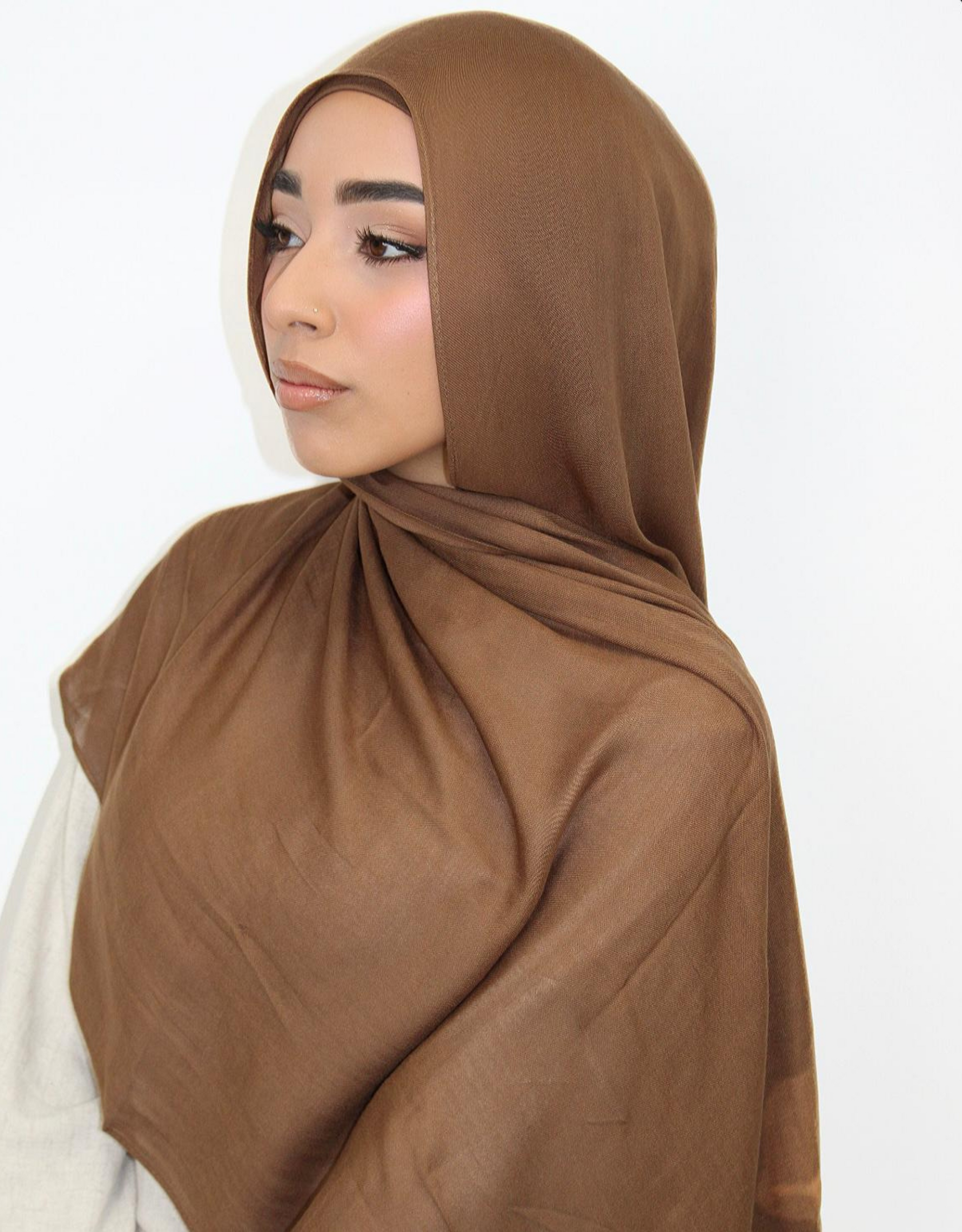 A warm, mid-brown with golden undertones. Cozy, rich, and effortlessly chic for day-to-night wear. Comes with matching cap (Single-stitched hijab)