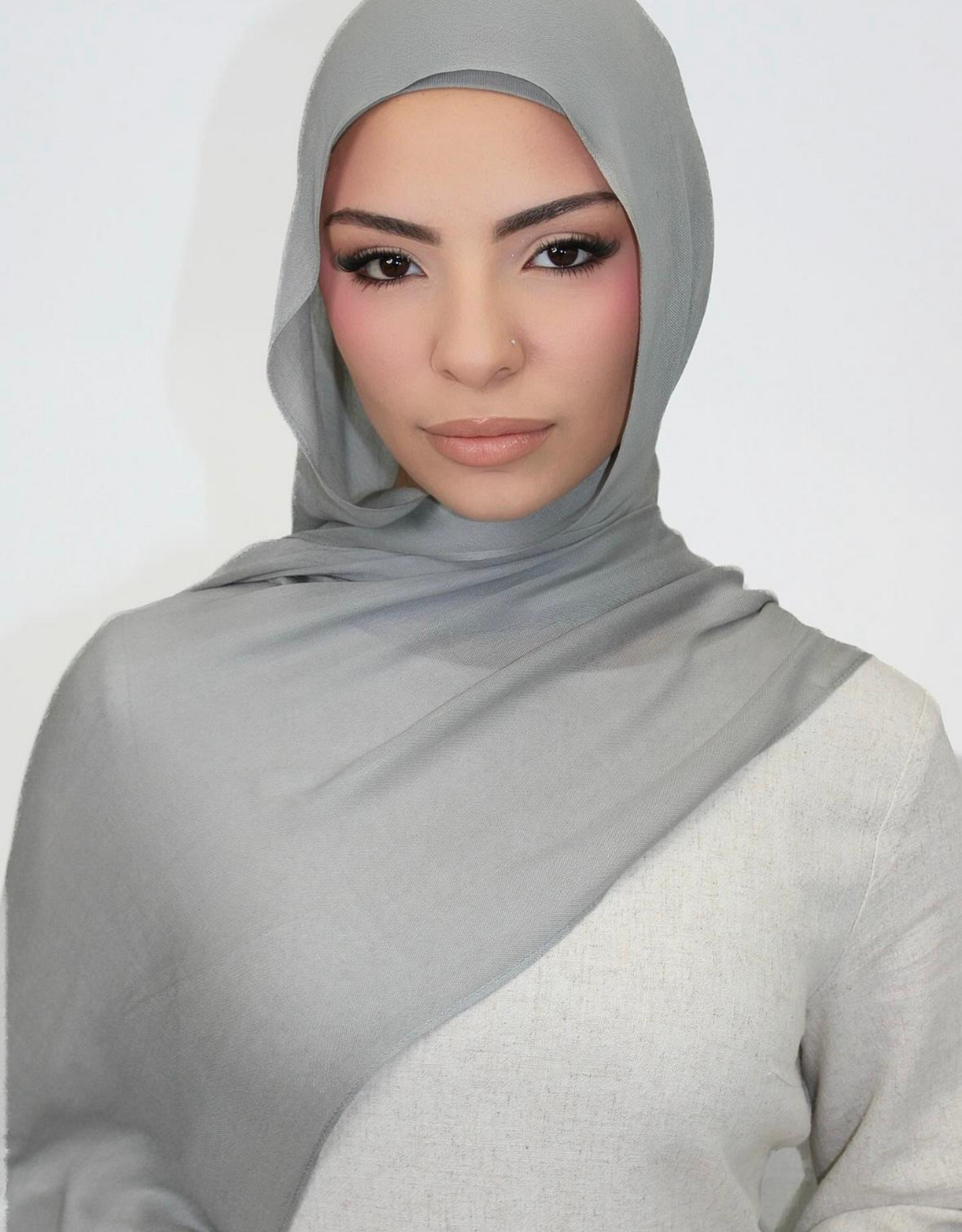 A cool-toned grey/blue hijab with a soft, airy finish. Perfect for creating a clean, minimal look that works beautifully for both everyday wear and formal styling. Comes with matching cap (Single-stitched hijab)