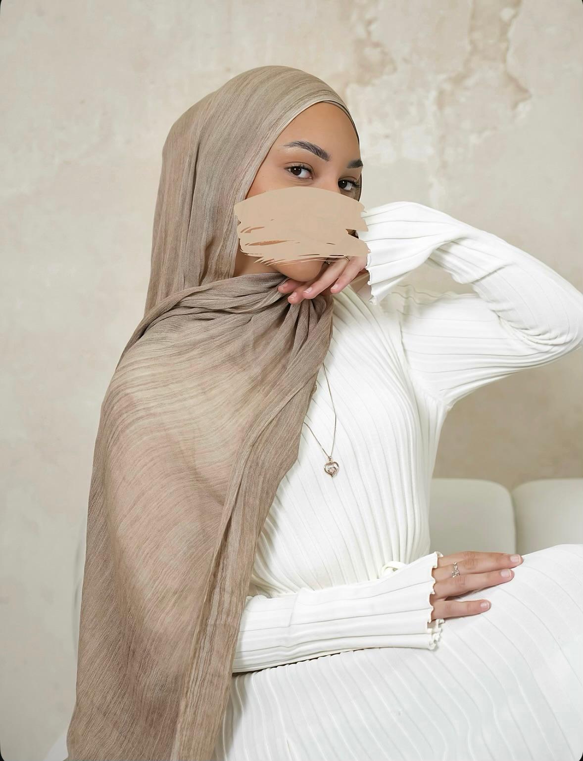 A warm taupe inspired by desert tones that offers softness and depth in one. The perfect everyday neutral for an effortlessly modest look. Made from our wrinkle-free blend Crafted with breathable material and whiskered edges.